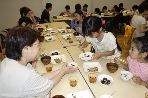 東京水産振興会「豊海おさかなミュージアム」では、さかなの生命力やおいしさを知り、親しみをもち、気づいたことを家族や身近な人に伝えあって「食育の輪」を広げていきたいと、「さかな丸ごと食育」を実践しています。