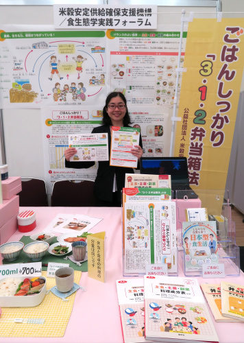 平成30年度全国栄養士大会展示会 2018.07.312020.06.08 公益社団法人 米穀安定供給確保支援機構との協働で、平成30年度全国栄養士大会展示会に出展いたしました。 「ごはんしっかり『3・1・2弁当箱法』 みんなで楽しく使える食育ツール 超簡単、適量でバランスのとれた1食づくり」をテーマに、新しくできたばかりのリーフレット「ごはんしっかり! ぴったり食事づくり/ごはんしっかり! 『3・1・2弁当箱法』」などを配布いたしました。 多くの方にご来場いただき、大変好評の2日間でした。 越智直実(フォーラム理事)