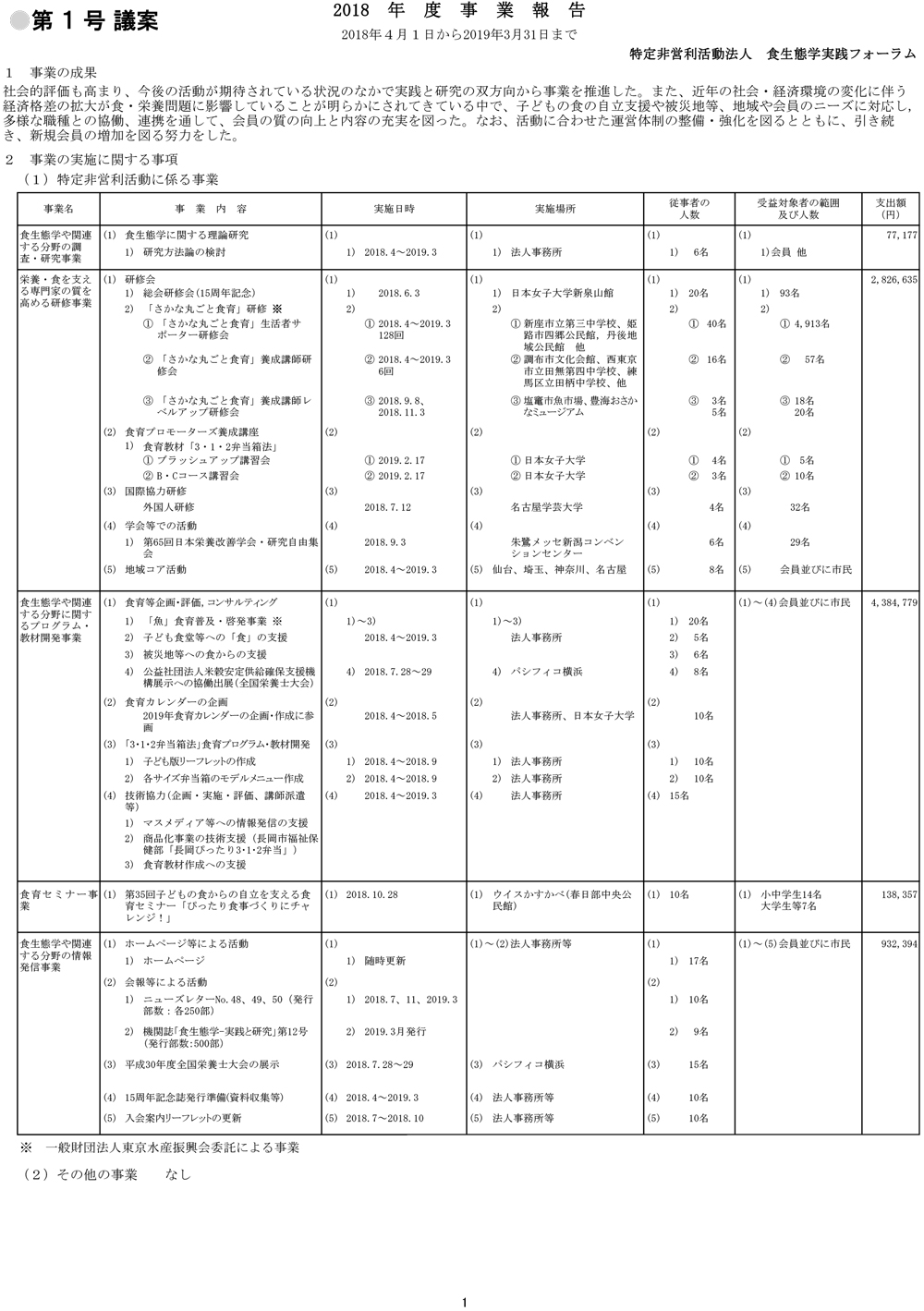 2018年度事業報告