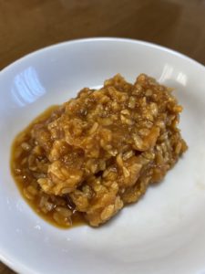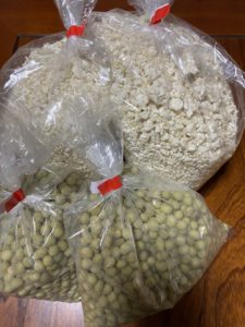 一晩水につけるところはKさんとそのお仲間(昔、子どもたちが参加していた地元のサッカークラブの保護者達)にお願いし、私は翌朝、公民館が開く時間に圧力鍋とともに参加する。それぞれ持参した圧力鍋で大豆を15~20分煮る際、「圧力鍋はみそ作りで年に1度使うだけだから忘れちゃったわよ。あれ?これで蓋はしまったかしら?」「いやーねえ、去年も同じこと言ってたわよ」なんて言いあいながら、地元公民館の調理室に7~8人の私と同年代のお母さん(おばあちゃん?)がワイワイと作業に取り掛かる。我が娘も含め、たまに若い世代が仲間に加わることは「食の伝承」が実感でき、うれしい。