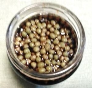醤油漬けにする場合は、熱湯消毒したきれいな瓶に水煮にした山椒をいれ、ひたひたに漬かる位に醤油を注ぎ、冷蔵庫に入れて保管すれば、半年くらいは保存できます。私は、鰯や鯵、鮎の煮付けの時に、臭みけしによく使います。