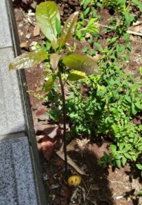 ネットで調べてみたところ、地植えにすると数メートルになるとあったので、ひとまず1本を広いところに植え直しました。実をつけるためには、4~5年はかかり、開花習性が異なる品種を混合して植えなければならないらしい。芽が出た3本の品種はわからないけれど、それぞれ近くに植えてみようと思います。大きく育ったら、また途中経過を報告します。楽しみに待っていてください。