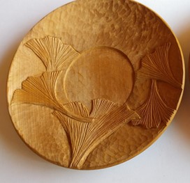 やりかけだった茶托2枚を、汗をかきながら写真のように彫りました。