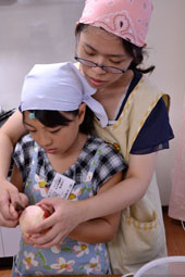 学習したことでは、「子ども達の集中力や吸収の早さを引き出し、自ら進んで実習・学習に取り組むことのできる環境を作ることが、お姉さん役の私達に必要な力だと気がついた」「難しかったのは”自ら”を重視すること、特に小学生は学年によって自立度が異なり、低学年ほどなんでも面倒見てしまいがちになった。子ども達の意見を受け止め、なぜそう考えたのか、どんなことを学習したからそう考えるのかという導きの力が求められると思った」「子ども達が同時に話すことを公平にどのように受け答えたらよいか、講義中に遊んでしまうことについての注意の仕方等について難しい」「教える際に、ただ言葉を並べて説明するだけでは理解してもらえないこと、知っている言葉の少ない子ども達に分かりやすく、興味を抱いてもらえるように伝える力が必要」「遊び相手や料理を作ることだけでなく、子ども達に近い目線で、子ども達主体に”食”が楽しいものであることを伝える手助けをすることだと感じた」など、自分達の役割について再考していました。