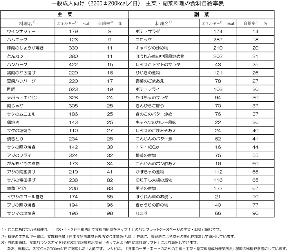 下の表は、その基にした一般成人向けの料理の一人前のデータです。パンフレットと合わせてご活用ください(データ算出等の詳細は脚注を参照)。