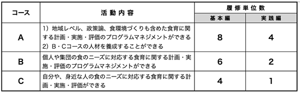 - 学習者主体で参加型、たのしく進める効果的な学習スキルや実践スキル(教育的アプローチのスキル)と、これらを実現可能かつ、持続性の高い食環境づくり(環境的アプローチ)の実践スキルと、これらを統合的に活用できる。